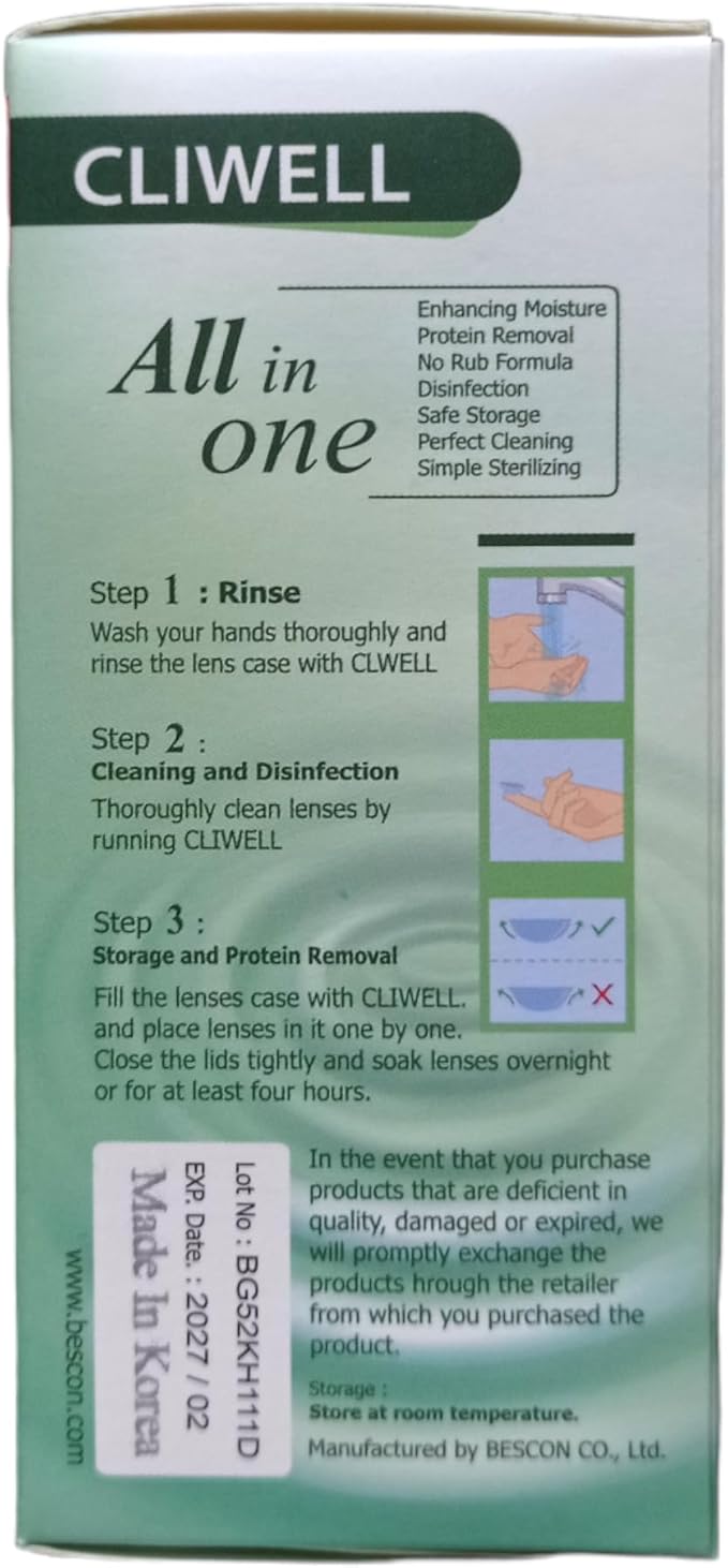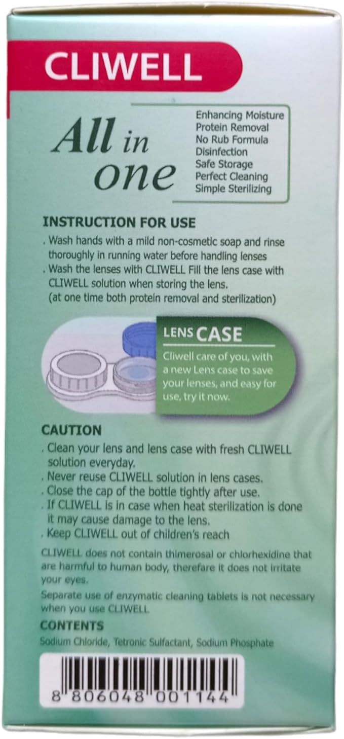 .wash the lenses with cliwell fill the lens case with cliwell solution when storing the lens